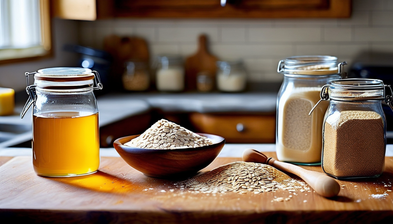 - Mezcla harina y agua en un frasco, cubre y deja fermentar a temperatura ambiente.